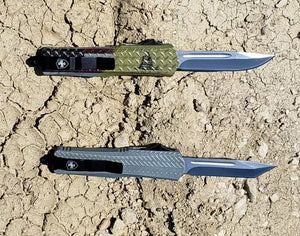 · Small Excalibur OTF with Blue G-10 Inlay: A compact and stylish Out-the-Front knife with a unique blue G-10 handle.